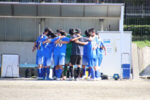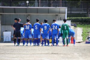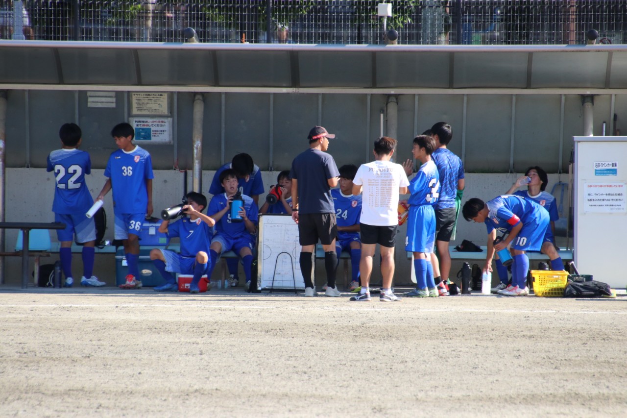 とはいえ真っ向勝負を挑みました。相手チームのシステムを分析しつつ、選手たちとのミーティング通りゲーム序盤から粘り強く戦います。3バックへ効果的なプレスを掛けつながら、中盤でのボール奪取を試みますが、体格差もありボール奪いきれない場面が多くなってしまいます。判断ミスから先制点を許してしまい、その後も何度かピンチが続きますがゴールを死守し前半を0−1で折り返します。後半早々身長差もありCKから失点してしまうと、暑さも重なり、心身ともに疲労が見え隠れします、それでも意図的な連携守備が発動し1点を奪え返すとチームは、息を吹き返し、更に点差を縮めようと圧力をかけ攻勢に出ますが、1−5の敗戦となりました。